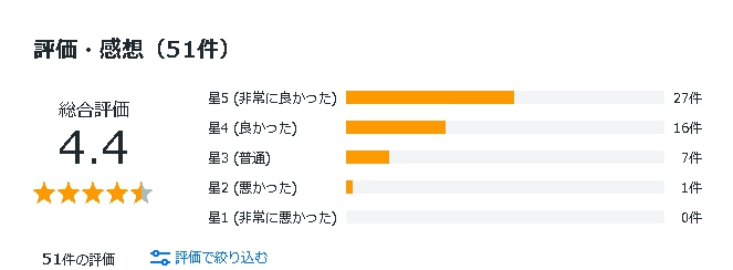 すでに、サービスを利用した人もいて、50件以上のレビューがついて、概ね、高評価のようです。
