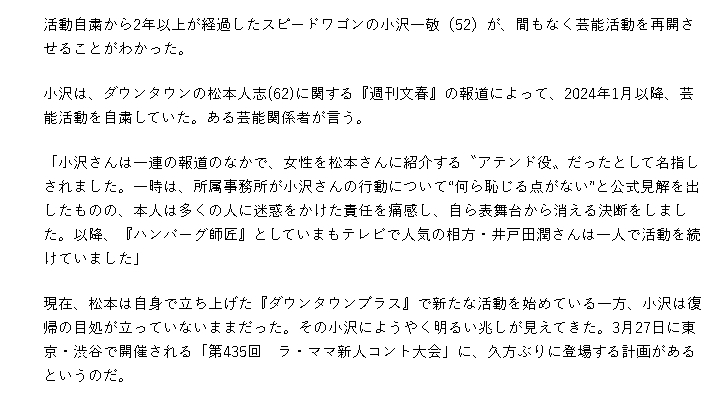 ただ、このタイミングで、3月27日に東京・渋谷で開催される「第435回 ラ・ママ新人コント大会」に登場するという記事が出てきました・・・