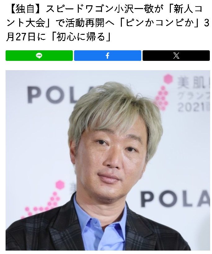 スピードワゴン・小沢一敬(52歳)の現在・・「新人コント大会」で活動再開へ!